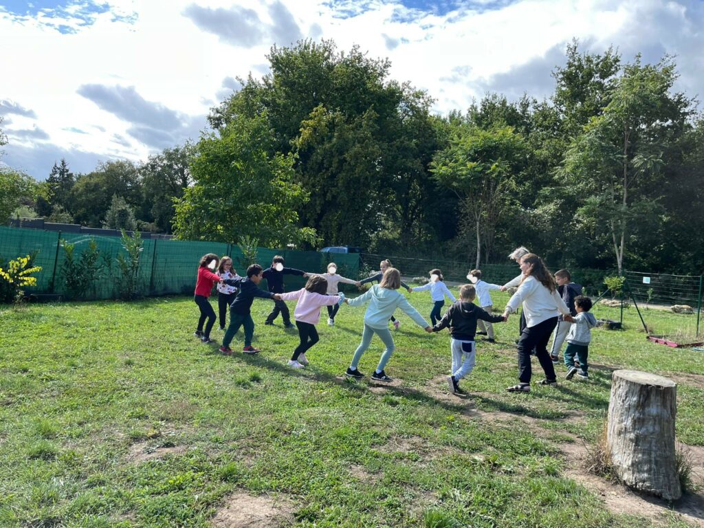 Les récréations ont lieux dans le jardin et de temps en temps dans la petite forêt qui est proche de l’école (les enfants adorent aller explorer dans la forêt).
